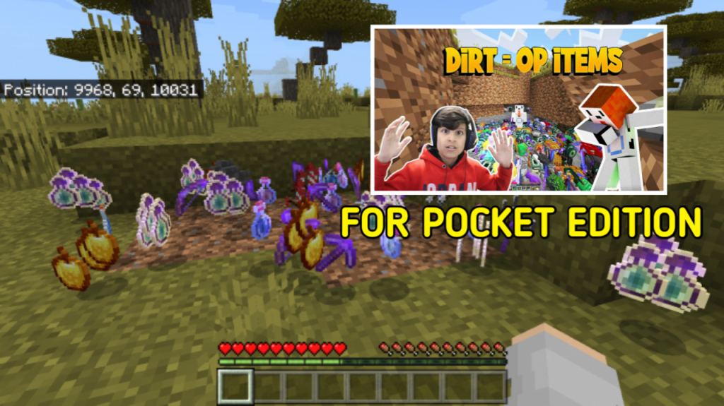 This Add-On allow you to get OP items each time you break a dirt or grass block. The dropped items are random. It is fully depends on your luck but all of the loot is very overpowered. Hope you enjoy!